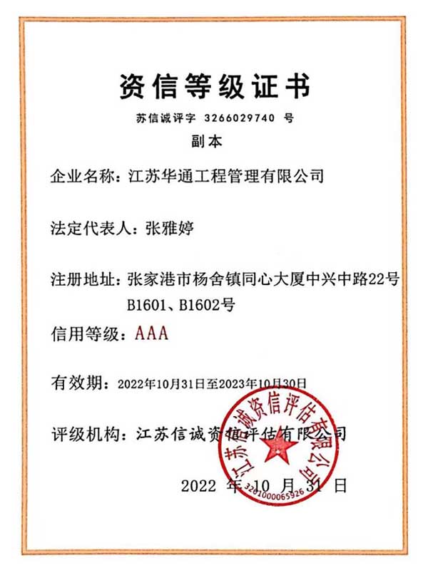江蘇華通工程管理有限公司(原名:張家港市華泰工程建設咨詢監理有限公司)成立于2001年4月,是張家港市第一家工商注冊從事項目前期咨詢策劃、項目管理、工程代建、招標代理、造價咨詢與跟蹤審計、工程監理的科技型技術服務類企業。目前具有房屋建筑工程監理、市政公用工程監理、人防工程監理、造價咨詢四個甲級資質;機電安裝工程監理、電力工程監理、化工石油監理、工程招標代理、政府采購(貨物)招標代理、水利工程施工監理(水利部)六個乙級資質以及建筑裝飾裝修工程專業承包二級資質、建筑裝飾工程設計專項丙級資質。公司是江蘇省住房和城鄉建設廳蘇建科〔2018〕79號發文公布首批江蘇省“全過程工程咨詢試點企業”。控股公司“張家港華泰防雷工程有限公司”具有省氣象局頒發的防雷工程檢測乙級資質和防雷工程施工乙級、防雷工程設計丙級資質 ,可開展各類建筑(構筑)物的防雷工程設計、施工與防雷檢測業務。